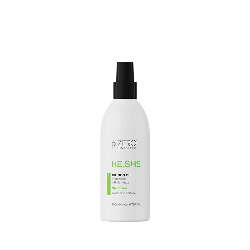 Olejek He.She Oil Non Oil przeciw puszeniu i nadający blask. Idealny dla włosów zniszczonych, suchych i matowych. Lekka formuła nie obciąża włosów.